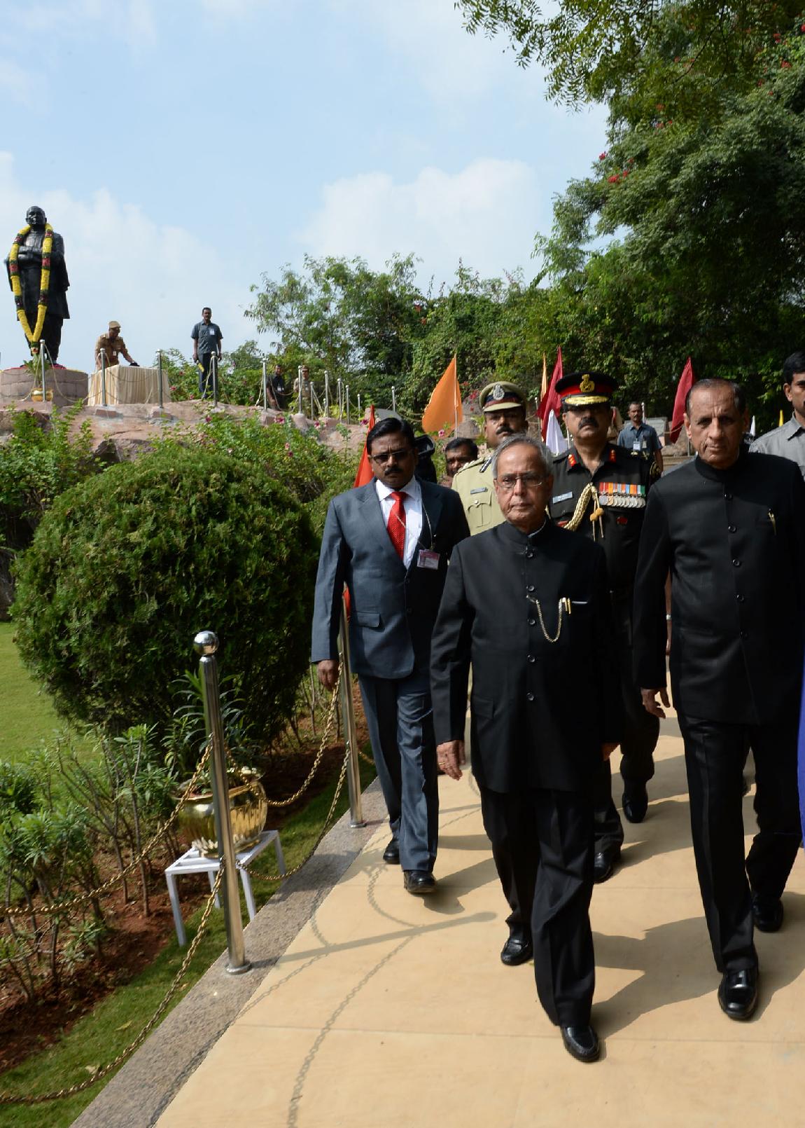 The President of India, Shri Pranab Mukherjee paying Floral Tribute at the Statue of Sardar Vallabhbhai Patel at Hyderabad in Andhra Pradesh on Nov 05, 2013