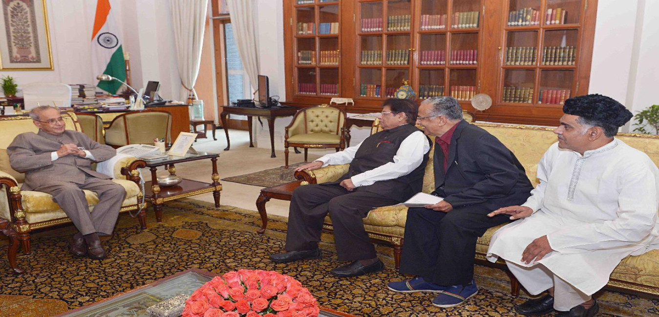 The President of India, Shri Pranab Mukherjee meeting with Shri E. Ahamed, MP (LS) with others, at Rashtrapati Bhavan on March 14, 2016.
