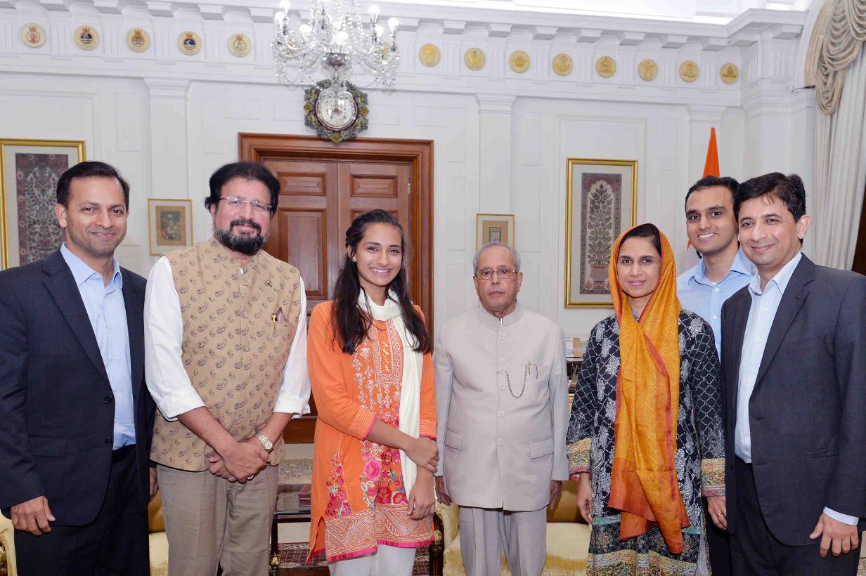 The President of India, Shri Pranab Mukherjee meeting with Dr. (Smt.) Fouzia Shersad, daughter of late Shri E. Ahamed, MP with her family members, at Rashtrapati Bhavan on March 15, 2017.