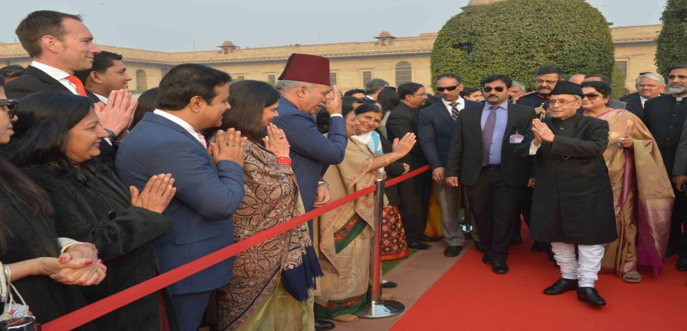 The President of India, Shri Pranab Mukherjee hosting the 'At Home' Reception and meeting the Invitees, at Rashtrapati Bhavan on January 26, 2016.