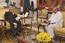 The President of India, Shri Pranab Mukherjee meeting with Shri Gautam Mukhopadhyay, former Ambassador of India to Myanmar, at Rashtrapati Bhavan on August 11, 2016.