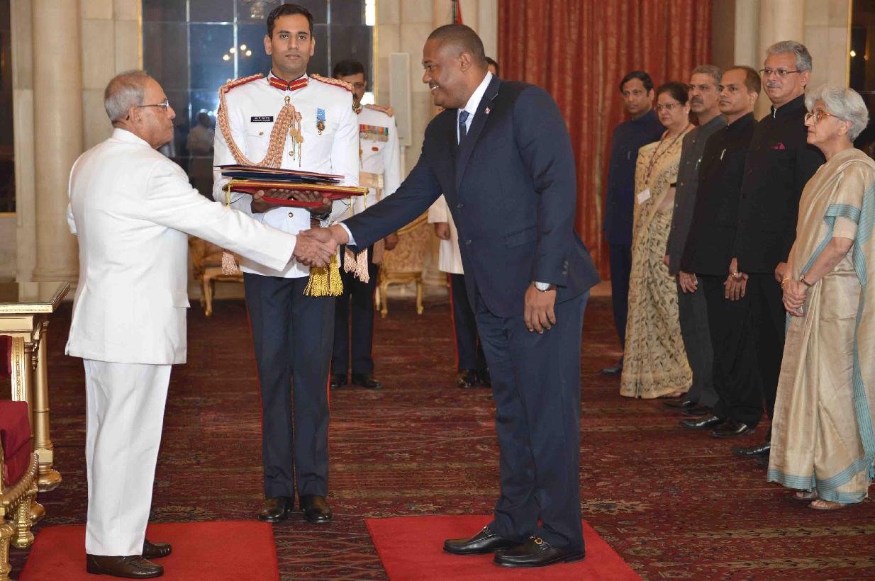 The Ambassador-designate of the Republic of Panama, HE Dr. Gilberto Llerena Garcia presenting his Credentials to the President of India, Shri Pranab Mukherjee, at Rashtrapati Bhavan, in New Delhi on November 13, 2015.