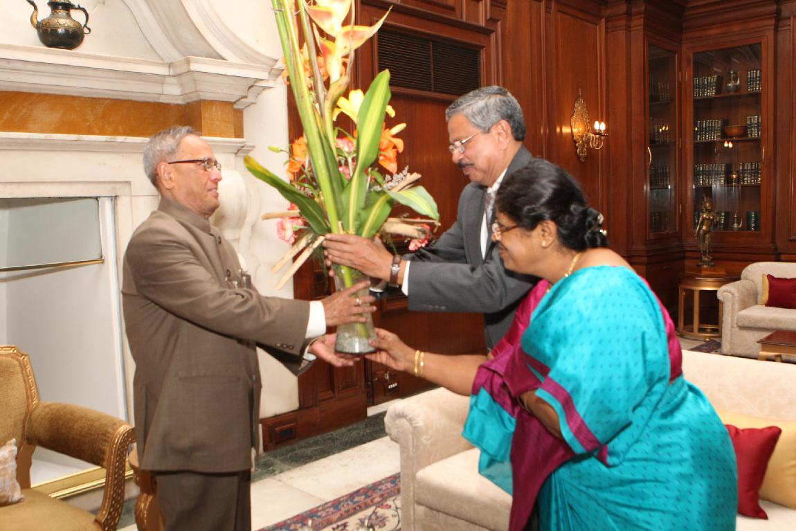 The President of India, Shri Pranab Mukherjee Meeting with Shri Justice Smt & Shri H L Dattu on March 14, 2013