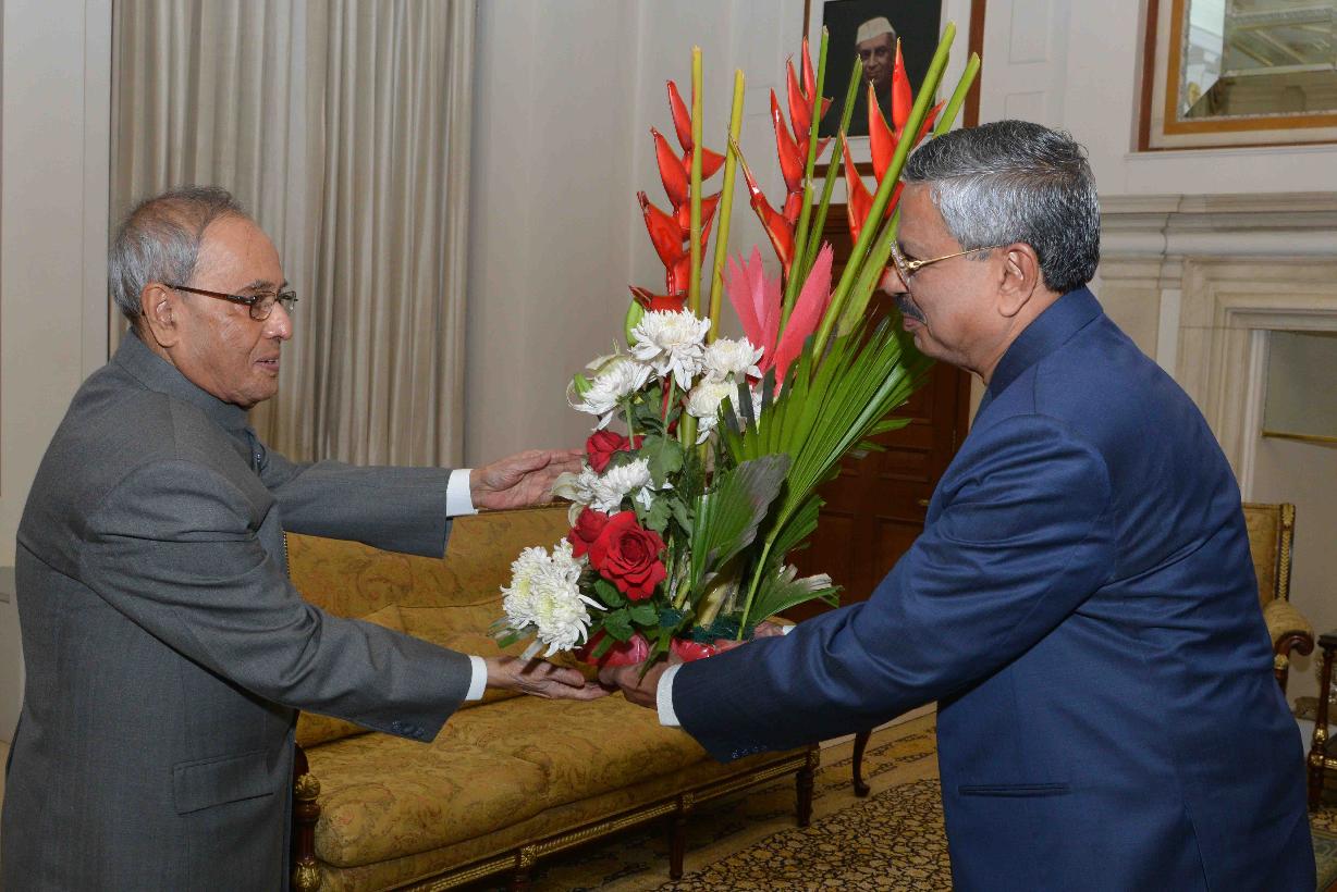 The President of India, Shri Pranab Mukherjee meeting with Shri Justice H.L. Dattu, former Chief Justice of India, at Rashtrapati Bhavan on December 08, 2015.
