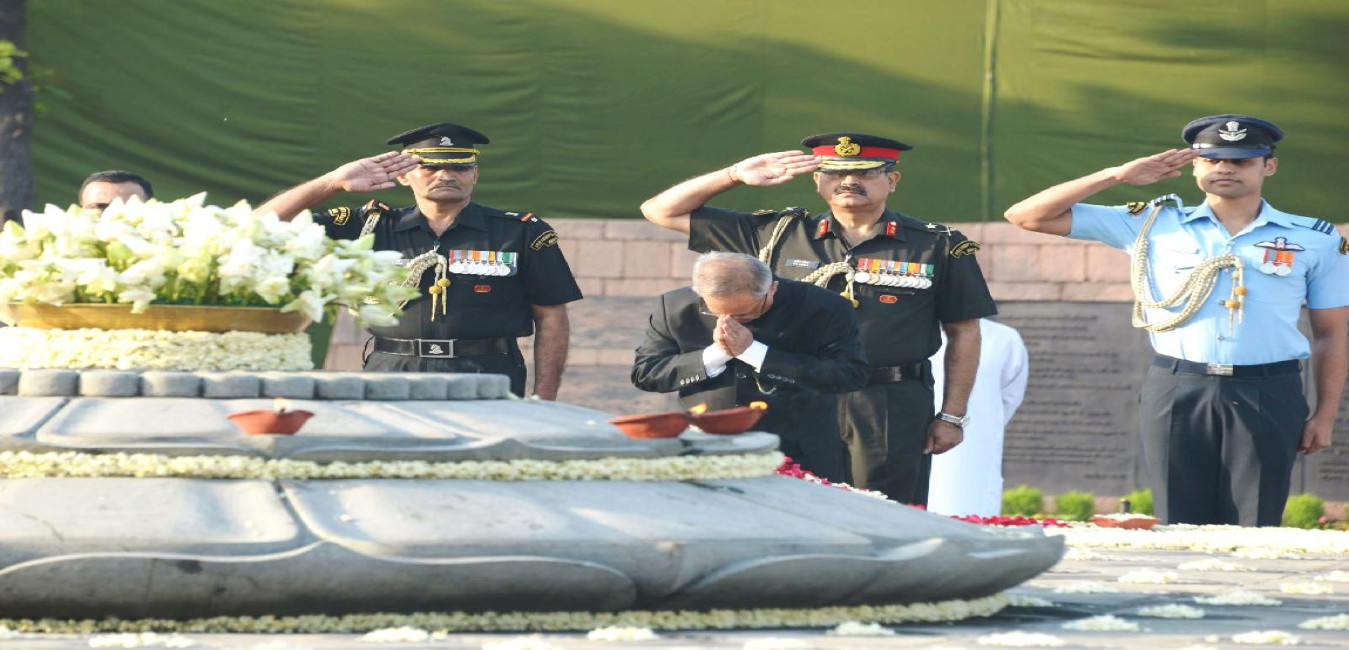 The President of India, Shri Pranab Mukherjee paying homage to the Former Prime Minister of India, Pandit Jawaharal Nehru on the occasion of his 53rd Death Anniversary, at Shanti Van, in New Delhi on May 27, 2017.