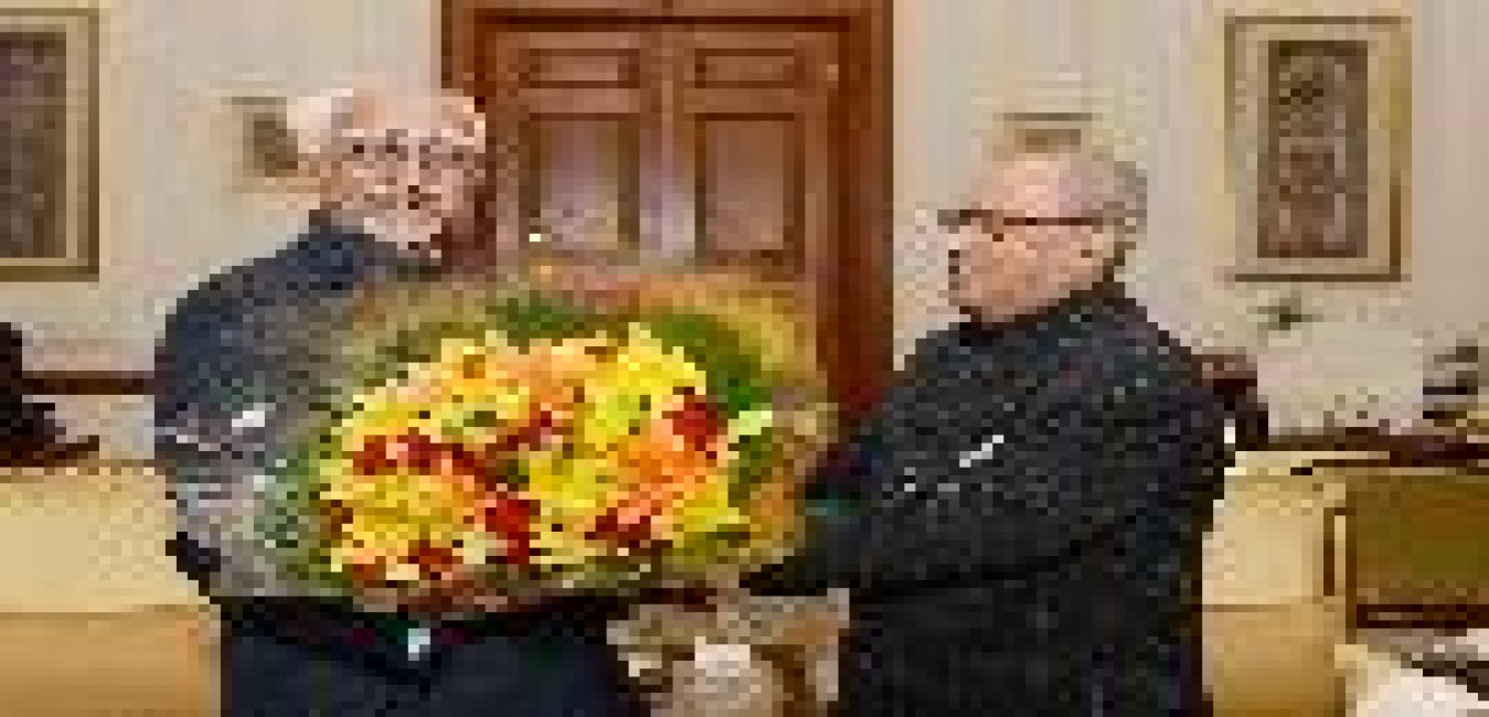 The Vice President of India, Shri Mohd. Hamid Ansari greeting the President of India, Shri Pranab Mukherjee, on the occasion of New Year, at Rashtrapati Bhavan on January 01, 2017.
