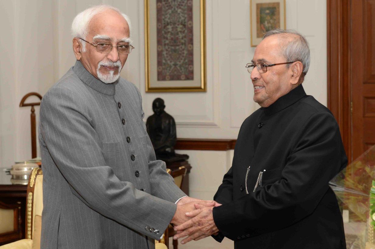The President of India, Shri Pranab Mukherjee meeting with Shri Mohd. Hamid Ansari, Vice President of India, at Rashtrapati Bhavan on December 19, 2016.