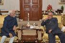 The President of India, Shri Pranab Mukherjee meeting with Shri Mohd. Hamid Ansari, Vice President of India, on the occasion of New Year, at Rashtrapati Bhavan on January 01, 2016.
