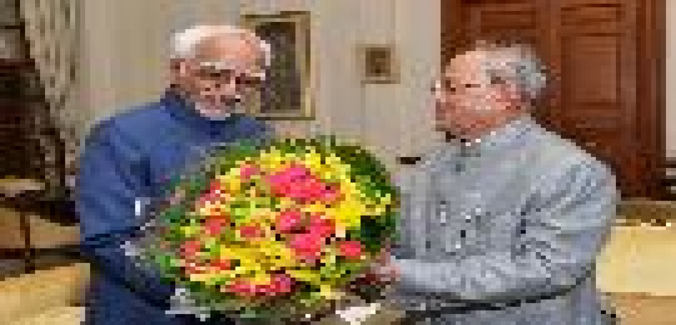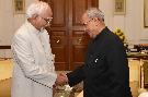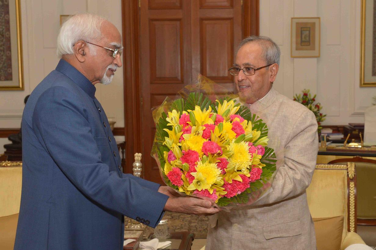 The President of India, Shri Pranab Mukherjee meeting the Vice President of India, Shri Mohd. Hamid Ansari, at Rashtrapati Bhavan, in New Delhi on July 16, 2015.