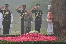 The President of India, Shri Pranab Mukherjee paying floral tributes at the samadhi of the former Prime Minister of India, Late Smt. Indira Gandhi to Commemorate her 98th Birth Anniversary, at Shakti Sthal in Delhi on November 19, 2015.