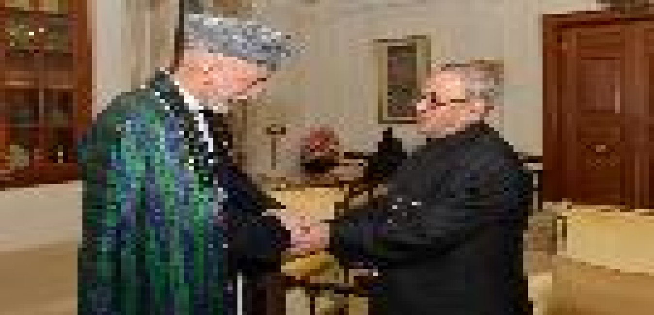 The President of the Islamic Republic of Afghanistan, HE Dr Hamid Karzai calling on the President of India, Shri Pranab Mukherjee at Rashtrapati Bhavan in New Delhi on Dec 13, 2013