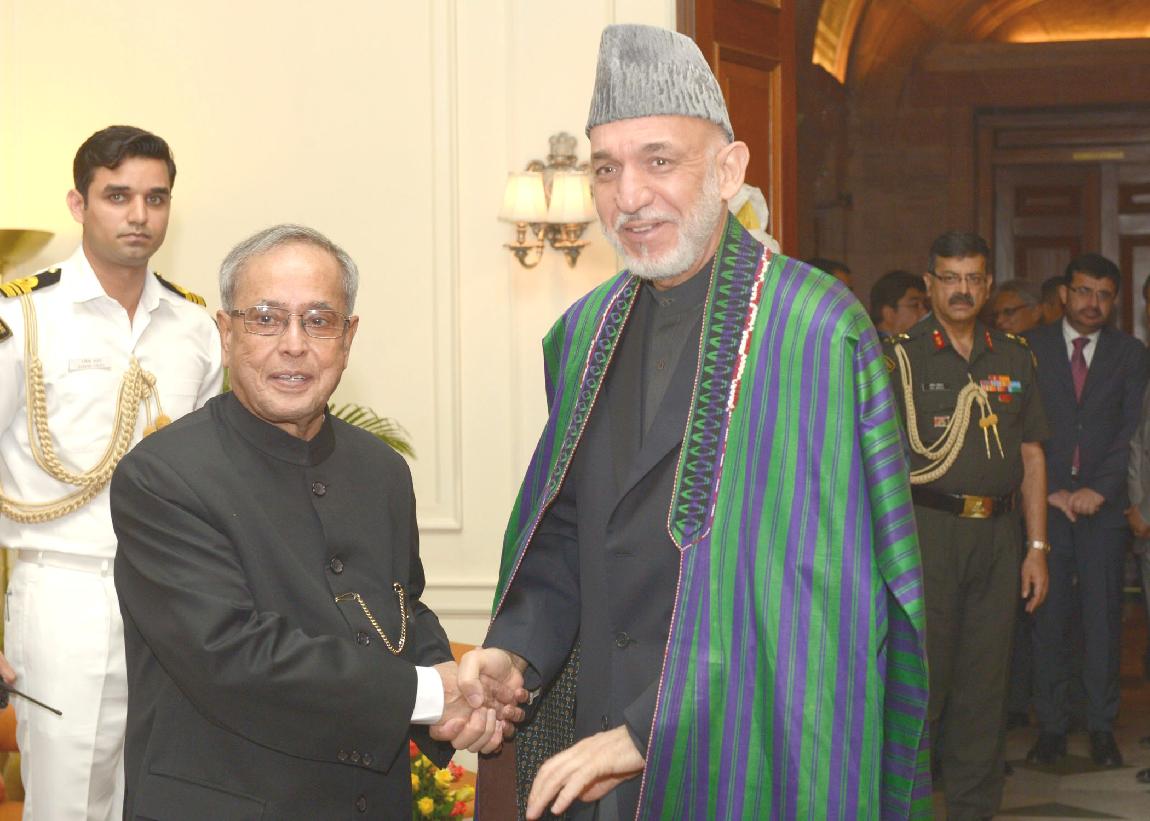 The President of India, Shri Pranab Mukherjee meeting with the President of the Islamic Republic of Afghanistan, HE Hamid Karzai at Rashtrapati Bhavan in New Delhi on May 27, 2014