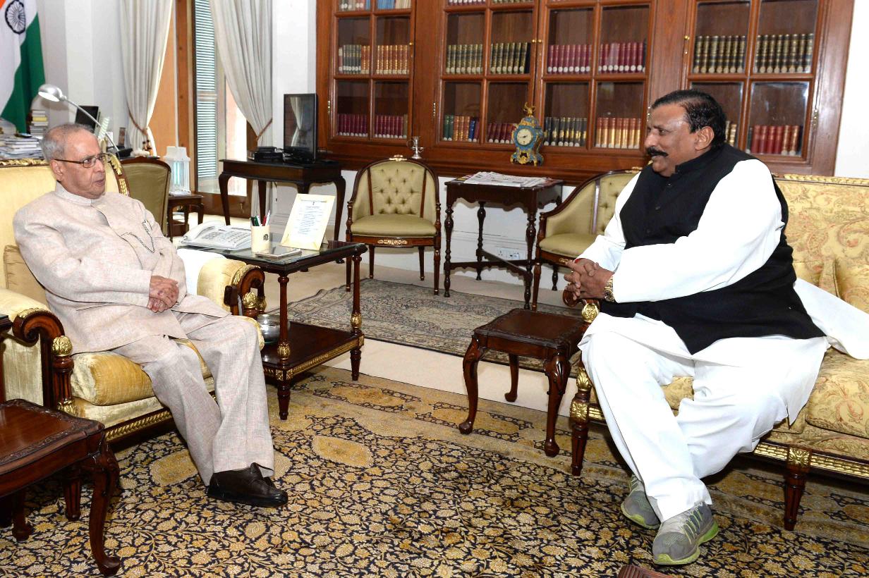 The President of India, Shri Pranab Mukherjee meeting with Kunwar Haribansh Singh, MP (LS) from Pratapgarh (UP), at Rashtrapati Bhavan on April 22, 2017.