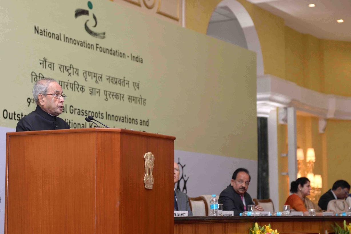 The President of India, Shri Pranab Mukherjee addressing at the presentation of the 9th National Biennial Awards for Grassroots Innovations and Outstanding Traditional Knowledge, at Rashtrapati Bhavan Cultural Centre on March 04, 2017.