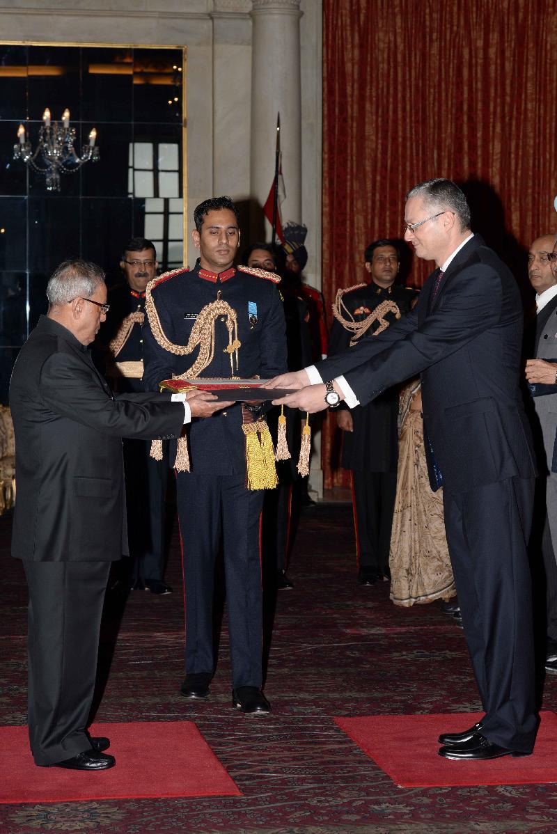 The Ambassador-Designate of Egypt, HE Mr Hatem El Sayed Tageldin presenting his credentials to the President of India, Shri Pranab Mukherjee at Rashtrapati Bhavan in New Delhi on Dec 09, 2014