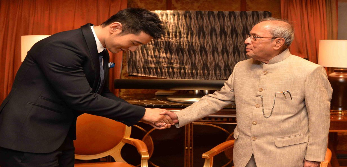 The famous Chinese actor, Mr. Huang Xiaoming calling on the President of India, Shri Pranab Mukherjee, at St Regis Hotel, in Beijing, People s Republic of China on May 25, 2016.