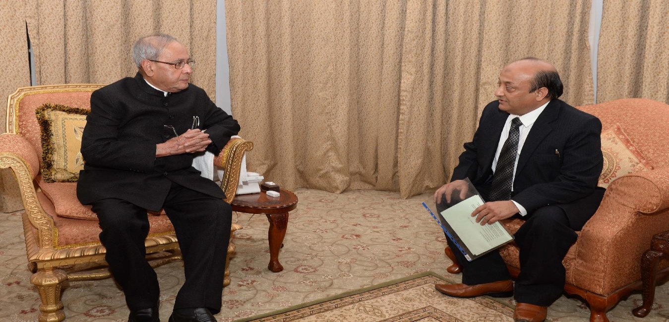The President of India, Shri Pranab Mukherjee meeting with Shri Iftekhar Shareef, Chairman, IGS Group, at Rashtrapati Nilayam, Bolarum, in Secunderabad on December 27, 2016.