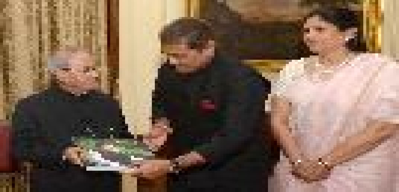 The President of India, Shri Pranab Mukherjee receiving the first copy of the pictorial biography of Shri Praful Patel, MP (RS) titled "Udaan - A graphic glimpse through the life of Praful Patel", at Rashtrapati Bhavan on April 10, 2017.
