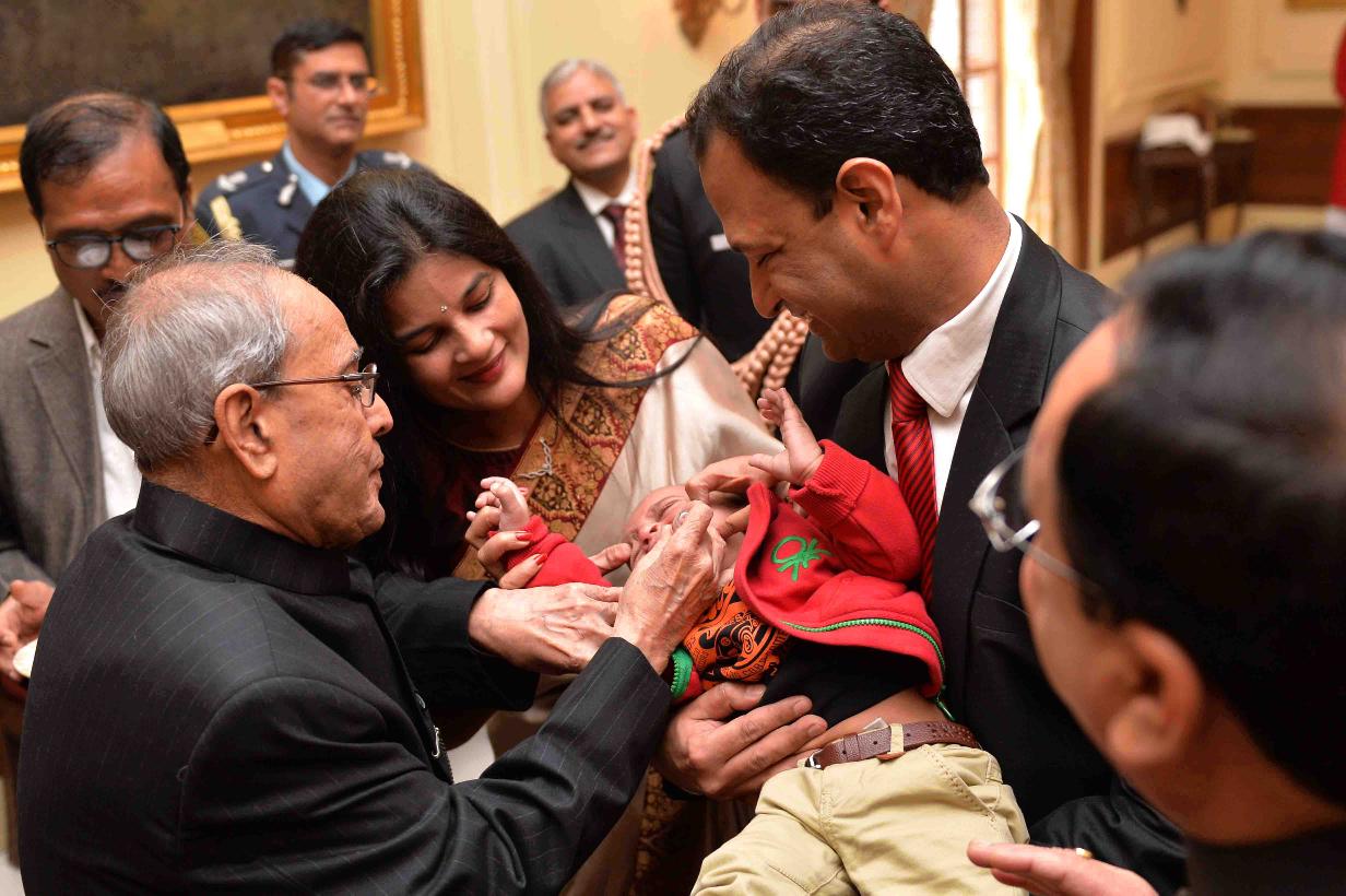 The President of India, Shri Pranab Mukherjee launching the Nationwide Polio Programme by administering Polio drops to the Children, at Rashtrapati Bhavan on January 16, 2016.