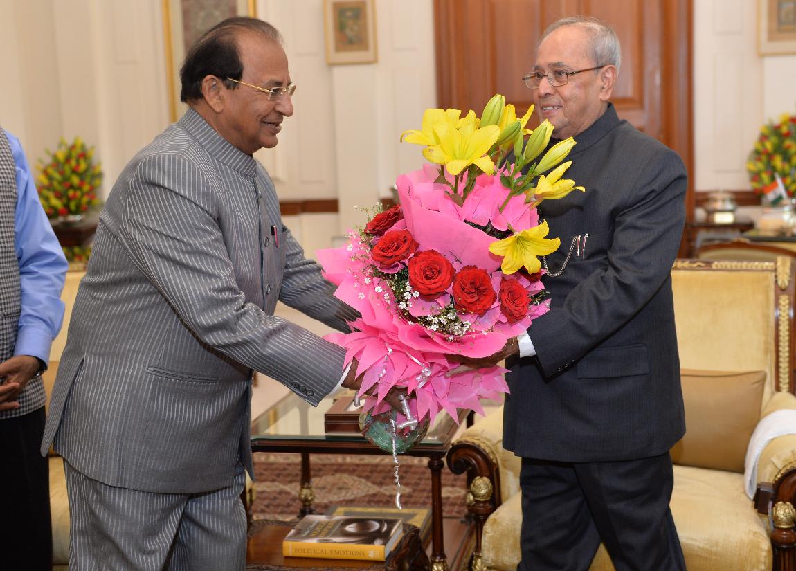 The Lt. Governor of Andaman & Nicobar Islands, Prof. Jagdish Mukhi greeting the President of India, Shri Pranab Mukherjee on the occasion of his birthday, at Rashtrapati Bhavan on December 11, 2016.