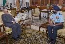 The President of India, Shri Pranab Mukherjee meeting with Air Marshal Jagjeet Singh, AOC-in-C, MC (Nagpur) & Hony ADC to the President, at Rashtrapati Bhavan on November 20, 2015.