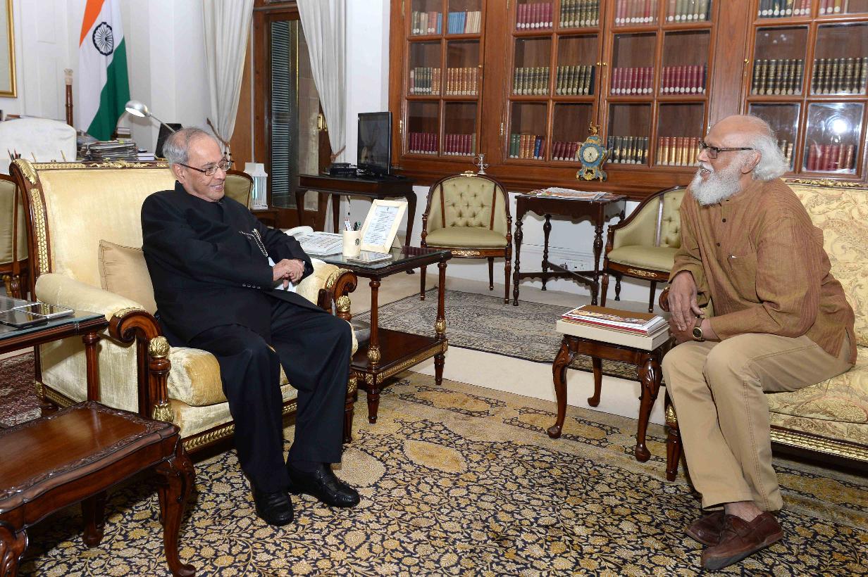 The President of India, Shri Pranab Mukherjee meeting with Shri Jatin Das, Artist, at Rashtrapati Bhavan on April 20, 2017.