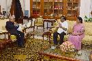 The President of India, Shri Pranab Mukherjee meeting with Smt. & Dr. K. Bharamchari, at Rashtrapati Bhavan on August 13, 2016.