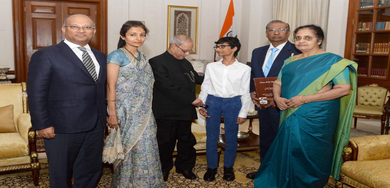 The President of India, Shri Pranab Mukherjee receiving a copy of the book ''Heart of the Matter'' from Dr. K.A. Abraham, Professor Emeritus-Cardiology, Apollo Speciality Hospital, Chennai, at Rashtrapati Bhavan on April 28, 2017.