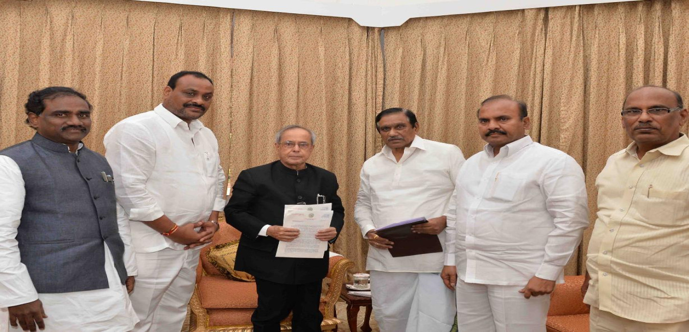 The President of India, Shri Pranab Mukherjee meeting with Shri K.E. Krishna Murthy and others, at Rashtrapati Nilayam, Bolarum, in Secunderabad on July 07, 2015.