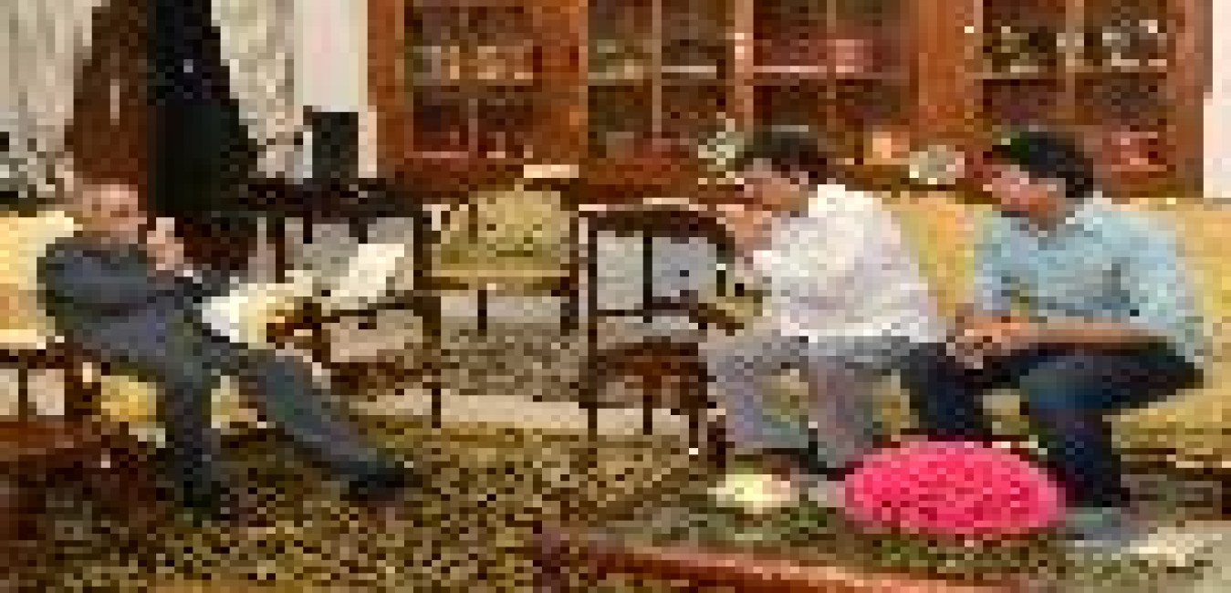 The President of India, Shri Pranab Mukherjee meeting with Shri KK Sharma, former Minister, Uttar Pradesh & Secretary, AICC alongwith his son, at Rashtrapati Bhavan, in New Delhi on August 21, 2015.