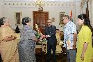 The President of India, Shri Pranab Mukherjee meeting with Brig. KP Singh Deo (Retd), Ex-MP (LS) and family, at Rashtrapati Bhavan, in New Delhi on August 06, 2015.