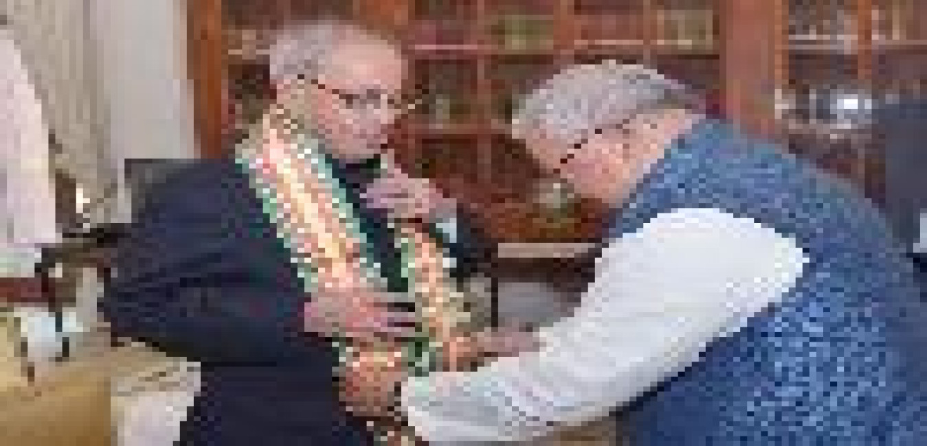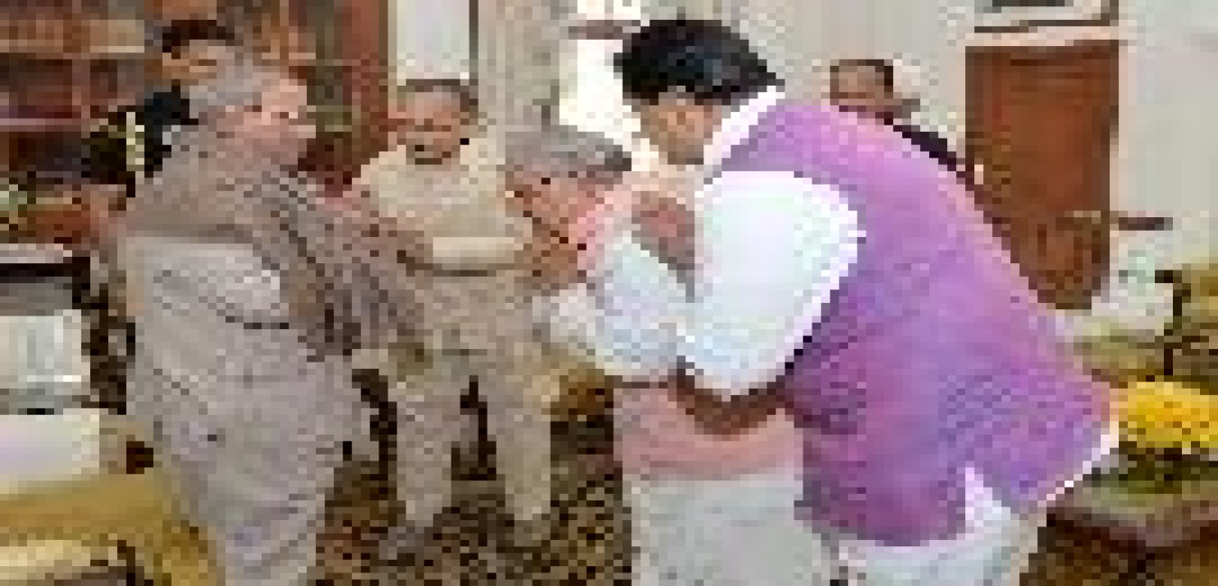 The President of India, Shri Pranab Mukherjee meeting with the Minister of Micro, Small & Medium Enterprises, Shri Kalraj Mishra, on the occasion of Diwali, at Rashtrapati Bhavan on November 11, 2015.
