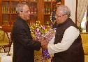 The President of India, Shri Pranab Mukherjee meeting the Union Minister for Micro, Small and Medium Enterprises, Shri Kalraj Mishra on the occasion of New Year, at Rashtrapati Bhavan in New Delhi on January 01, 2015
