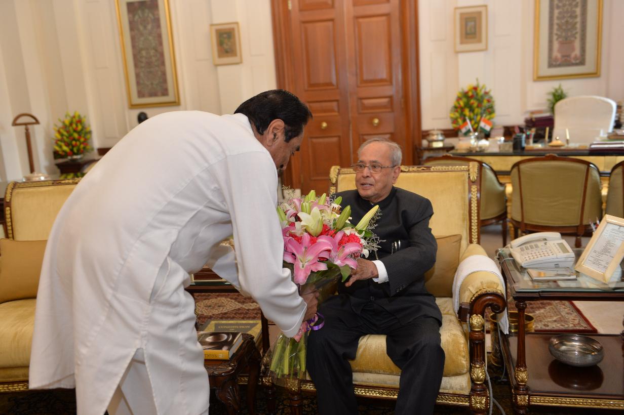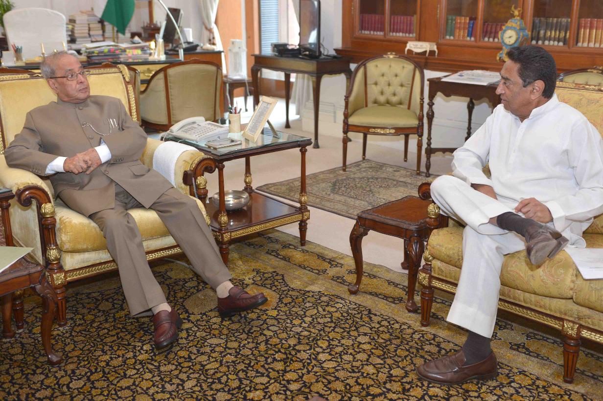 The President of India, Shri Pranab Mukherjee meeting with the Minister of Urban Development & Parliamentary Affairs, Shri Kamal Nath at Rashtrapati Bhavan in New Delhi on May 17, 2014