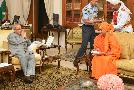The President of India, Shri Pranab Mukherjee meeting with Brahmachari Kamleshwaranandji, disciple of HH Shankaracharya Swami Shri Swaroopanand Saraswati Ji Maharaj of Shri Shardapeeth, Dwarka, at Rashtrapati Bhavan on February 29, 2016.