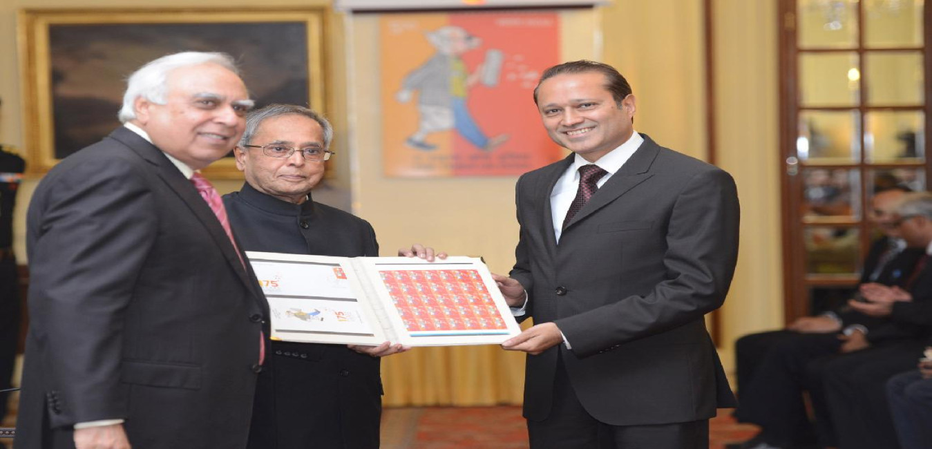 The President of India, Shri Pranab Mukherjee releasing a Commemorative Postal Stamp on the occasion of the 175th Anniversary of the Times of India at Rashtrapati Bhavan in New Delhi on Nov 13, 2013