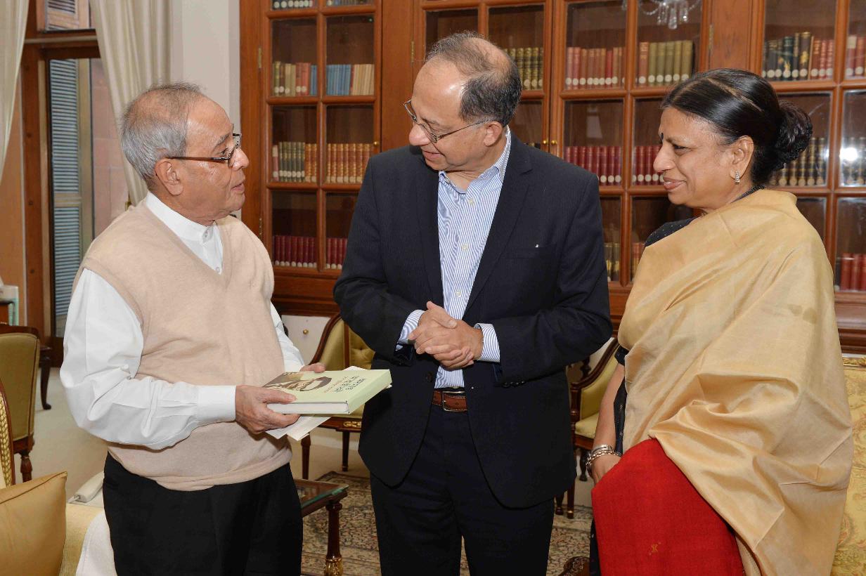 The President of India, Shri Pranab Mukherjee meeting with Smt. & Shri Kaushik Basu, at Rashtrapati Bhavan on December 18, 2015.