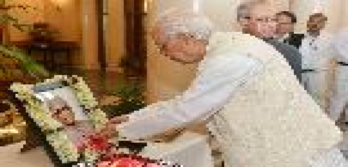 The President of India, Shri Pranab Mukherjee and the Governor of West Bengal, Shri Keshari Nath Tripathi paying floral tributes, at the portrait of Shri Neelam Sanjiva Reddy, former President of India, on his Birth Anniversary, at Kolkata, in West Bengal on May 19, 2017.