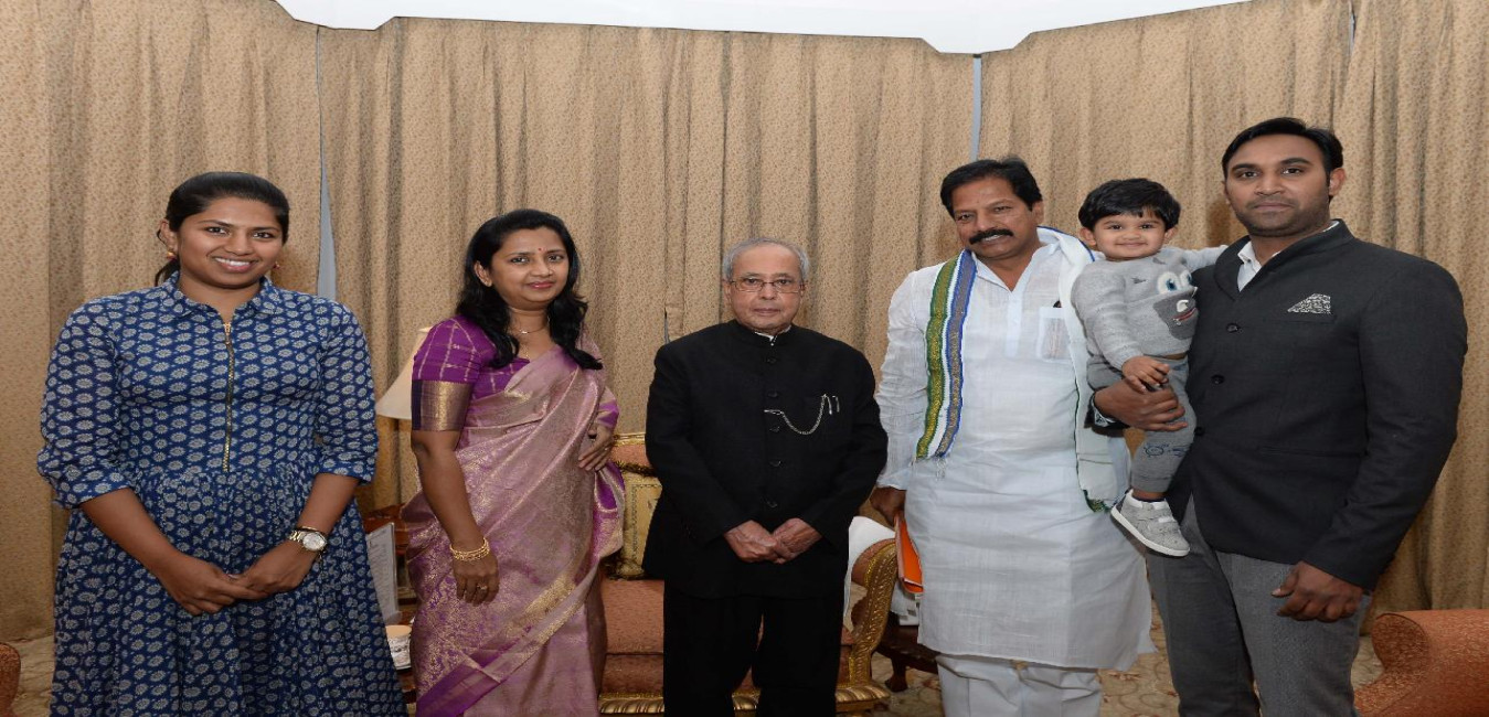 The President of India, Shri Pranab Mukherjee meeting with Shri Kona Raghupathi, MLA, Baptala alongwith family members, at Rashtrapati Nilayam, Bolarum, in Secunderabad on December 27, 2016.
