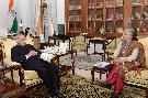 The President of India, Shri Pranab Mukherjee meeting with Ms. Leena Srivastava, Vice Chancellor, TERI University, at Rashtrapati Bhavan on January 13, 2017.