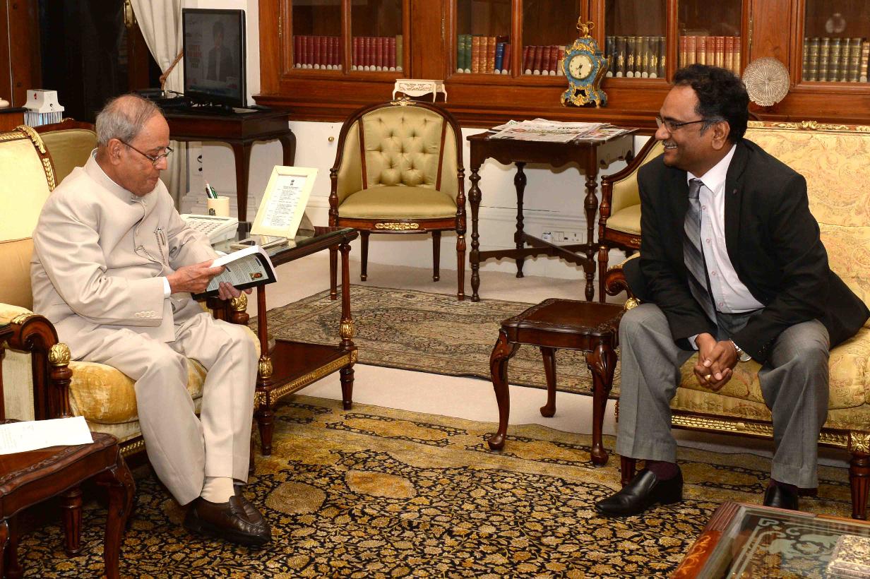 The President of India, Shri Pranab Mukherjee meeting with Shri M. Sridhar Acharyulu, Information Commissioner, Central Information Commission, at Rashtrapati Bhavan on June 20, 2016.