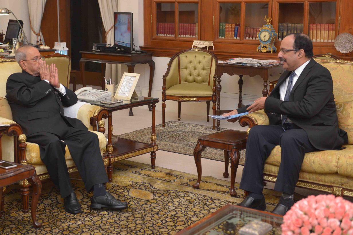 The President of India, Shri Pranab Mukherjee meeting with Shri Malay Mukherjee, CEO & Managing Director, IFCI Limited, at Rashtrapati Bhavan on July 19, 2016.