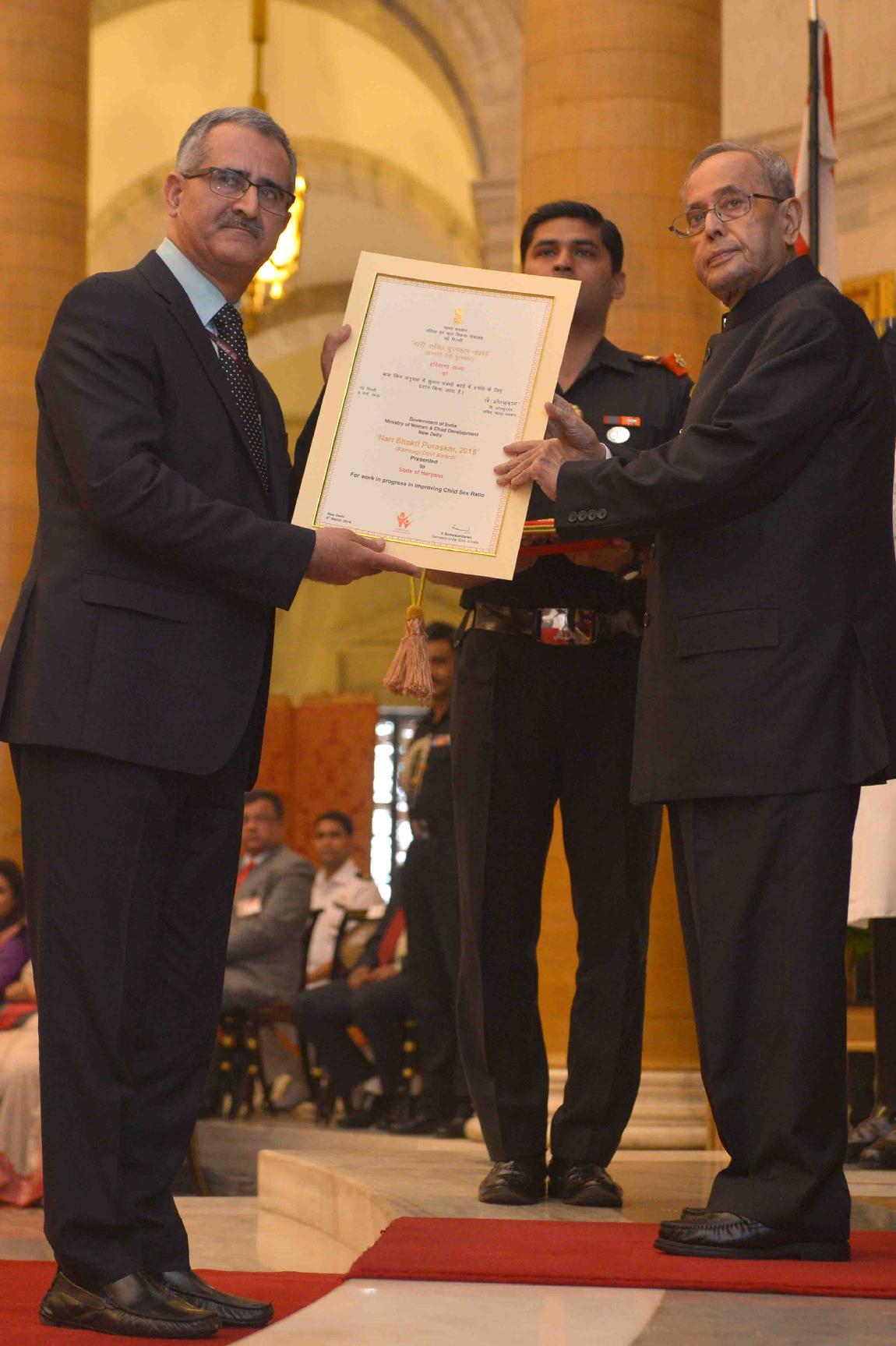 The President of India, Shri Pranab Mukherjee presenting the Nari Shakti Puraskar 2015, on the occasion of the International Women s Day, at Rashtrapati Bhavan on March 08, 2016.