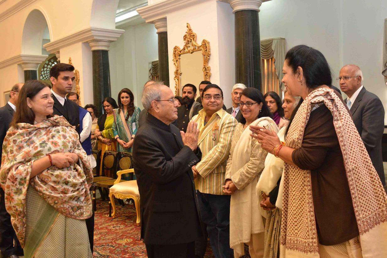 The President of India, Shri Pranab Mukherjee during a lunch hosted for the 100 Women Achievers of India selected by the Ministry of Women and Child Development in collaboration with Facebook vide contest through Public Nominations, at Rashtrapati Bhavan on January 22, 2016.