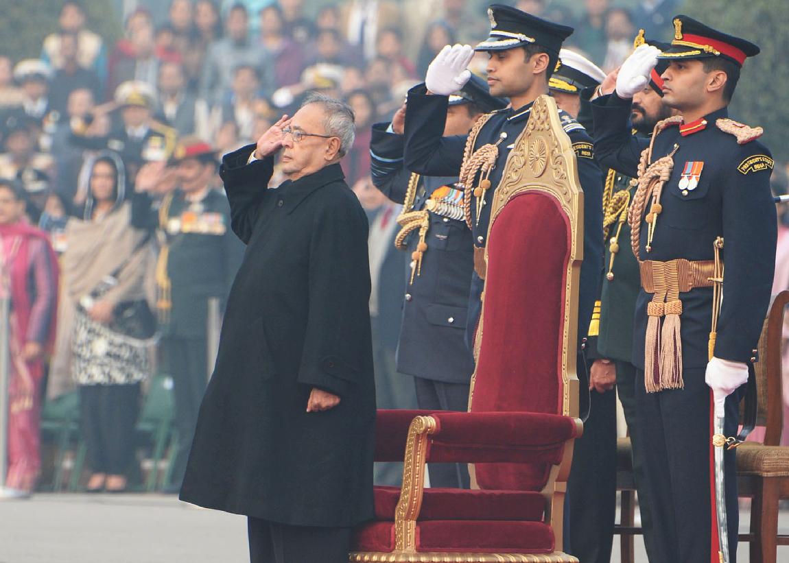 The President of India, Shri Pranab Mukherjee being witnessing the Beating Retreat Ceremony at Vijay Chowk in New Delhi on Jan 29, 2014
