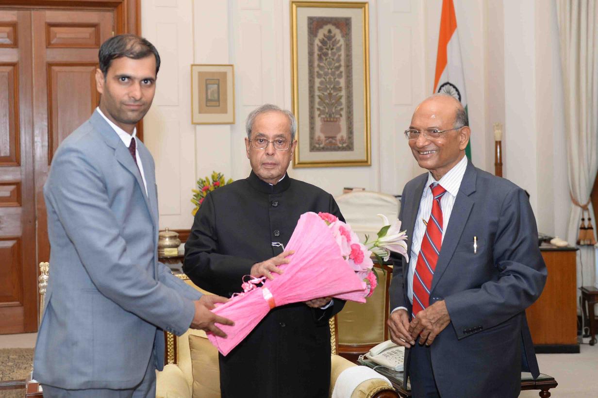 The President of India, Shri Pranab Mukherjee meeting with Shri Manoj Chauhan, at Rashtrapati Bhavan on June 30, 2016.