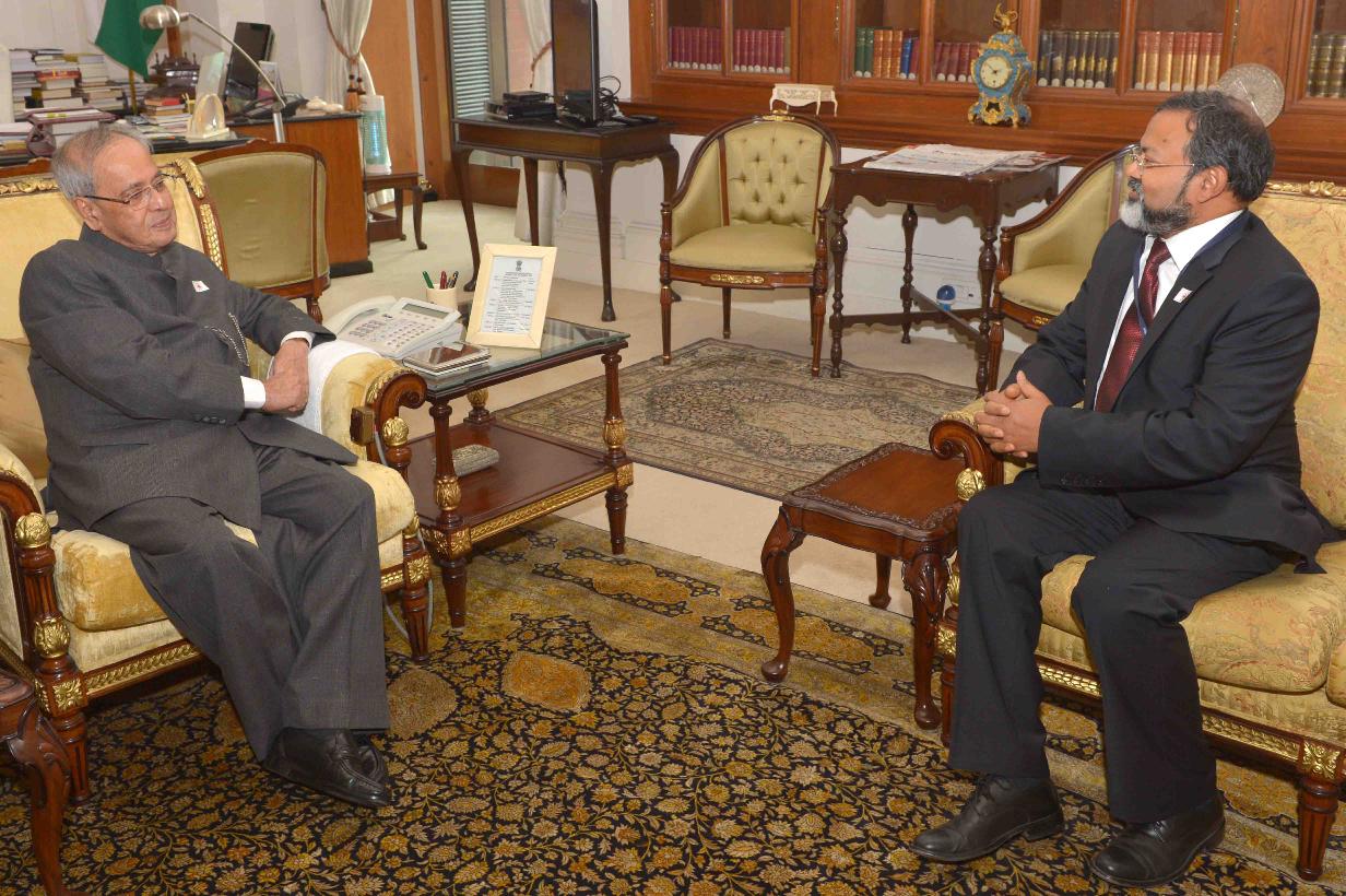 The President of India, Shri Pranab Mukherjee meeting with Shri Manoj Kumar Bharti, Ambassador of India to Ukraine, at Rashtrapati Bhavan, in New Delhi on November 02, 2015.