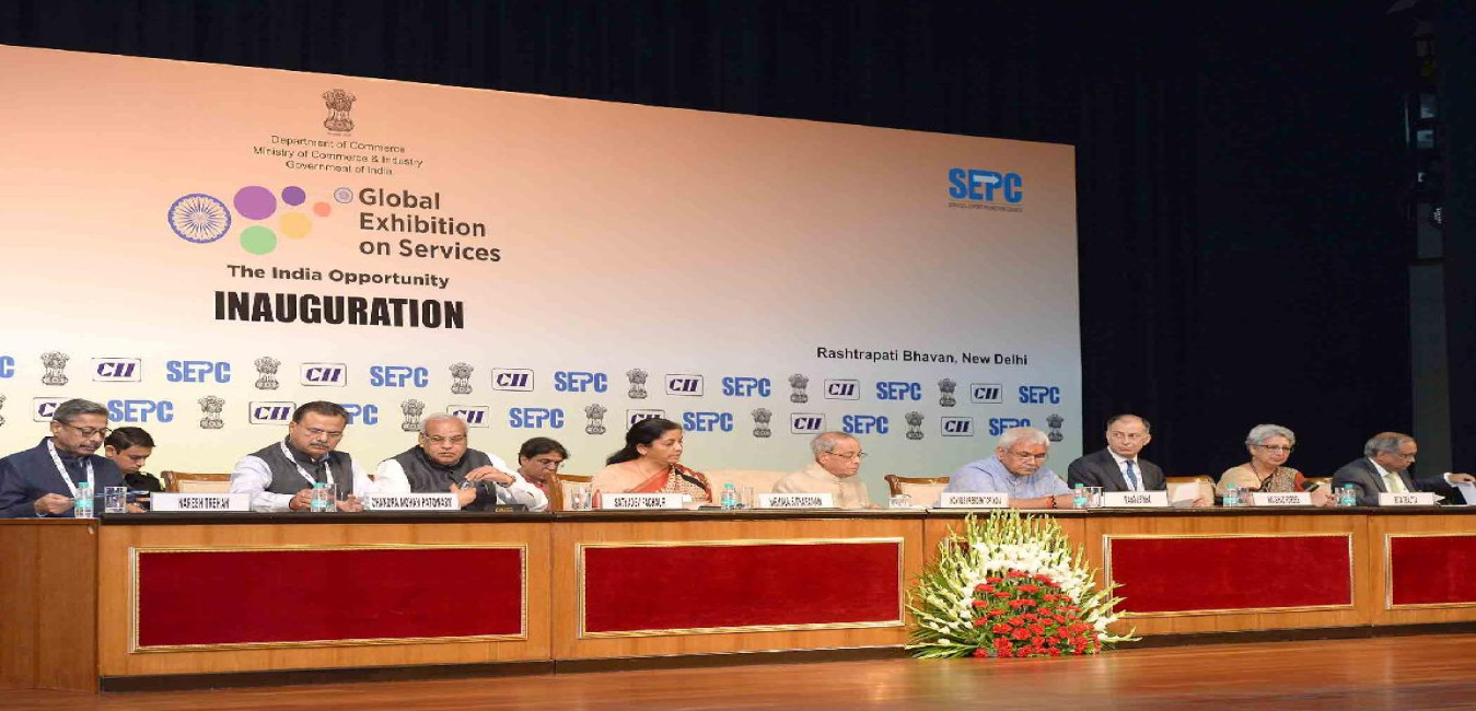 The President of India, Shri Pranab Mukherjee addressing at the inauguration of the 3rd edition of the Global Exhibition on Services (GES-2017), at Rashtrapati Bhavan on April 17, 2017.