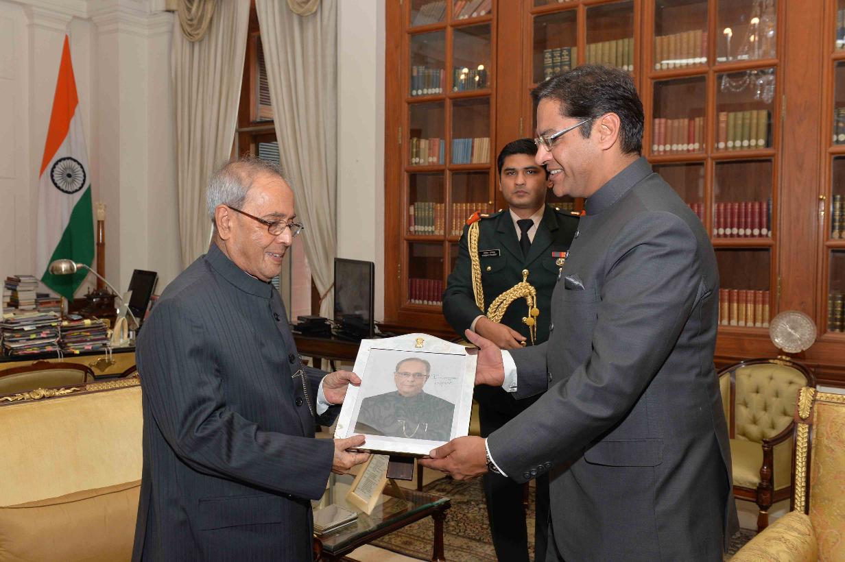 The President of India, Shri Pranab Mukherjee meeting with Shri Manpreet Vohra, Ambassador-designate of India to Afghanistan, at Rashtrapati Bhavan on January 12, 2016.