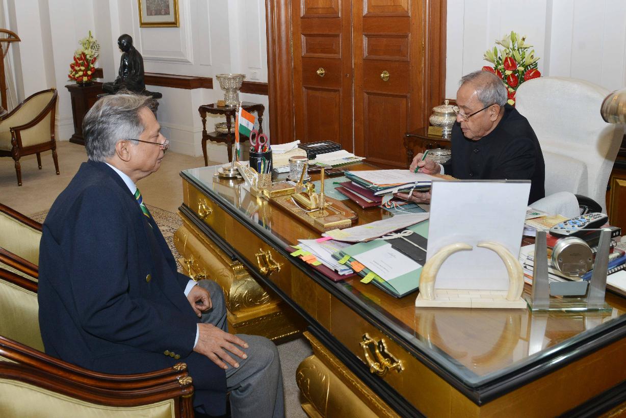The President of India, Shri Pranab Mukherjee meeting with Shri Mihir Kumar Chatterjee, at Rashtrapati Bhavan on November 06, 2015.